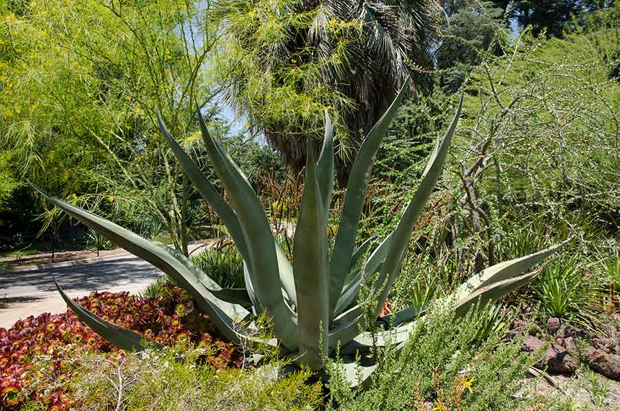 An Agave mapisaga ‘Lisa’ in The Huntington’s Desert Garden, 2019. In 1951, when scientists from the U.S. Department of Agriculture’s Division of Plant Exploration were searching for plants that could produce cortisone, The Huntington sent them more than 2,000 pounds of agave leaves and other material. Photograph by Lisa Blackburn.