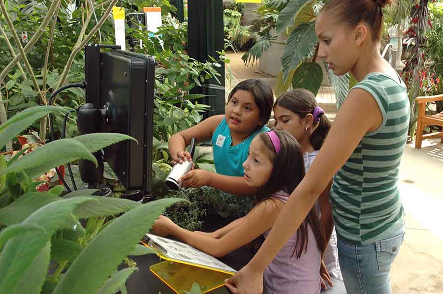 Children explore the world of plants through hands-on science activities in The Rose Hills Foundation Conservatory of Botanical Science. Photograph by Lisa Blackburn.