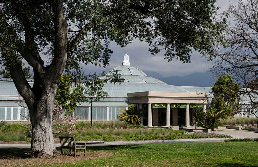 The Rose Hills Foundation Conservatory of Botanical Science was inspired by a wooden lath house that once stood on Henry E. Huntington’s original estate. Photograph by Lisa Blackburn.