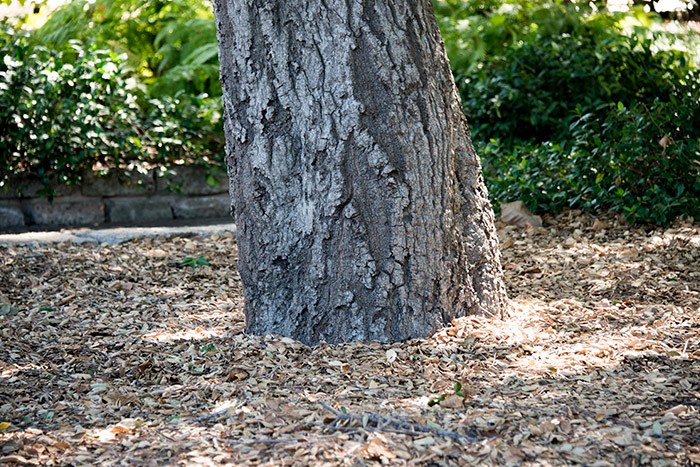 “For a tree to breathe, it needs to have its root collar unencumbered and exposed,” says Goyette. “Especially with native oaks, you don’t want to put soil or mulch up against them.”