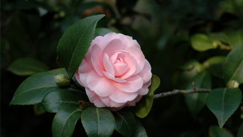 When many parts of the country are blanketed by snow, the winter landscape at The Huntington is covered with camellias. The Camellia Collection includes nearly 80 different species—sasanqua, japonica, reticulata, hiemalis, vernalis, and tunghinensis, to name just a few—and some 1,200 different varieties. Many of them are at the peak of their bloom right now, putting on a dazzling display in the North Vista, the Japanese Garden, and the Garden of Flowing Fragrance.