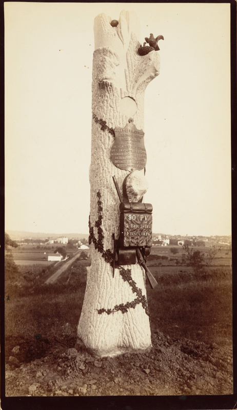 Monument honoring the 90th Pennsylvania Infantry, 2nd Brigade, 2nd Division, 1st Corps, William H. Tipton (1850–1929), ca. 1885, Herbert William Singleton Collection Of Civil War Photographs (ca. 1861–90s), photCL 445 (215). Huntington Library, Art Collections, and Botanical Gardens.