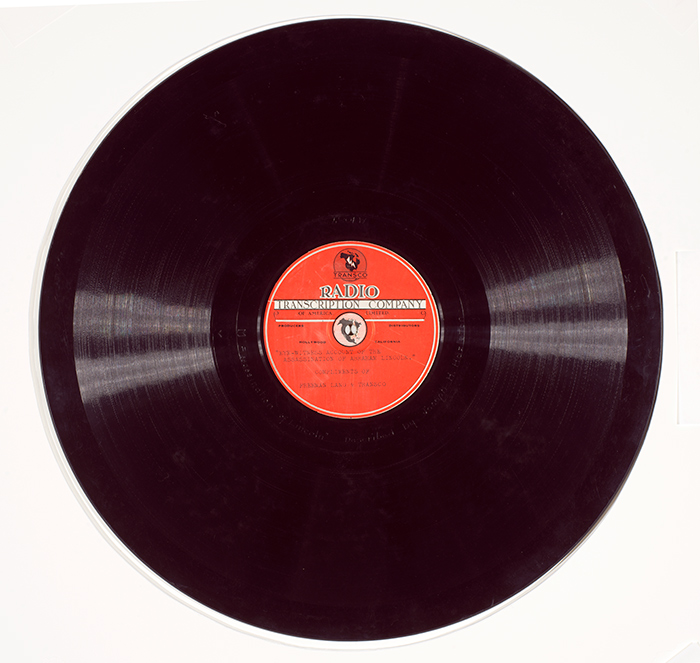 Phonograph record of actor Joseph H. Hazelton reminiscing about Abraham Lincoln’s assassination. The recording was made in 1933 at Freeman Lang’s studios in Hollywood, California. The Huntington Library, Art Collections, and Botanical Gardens.