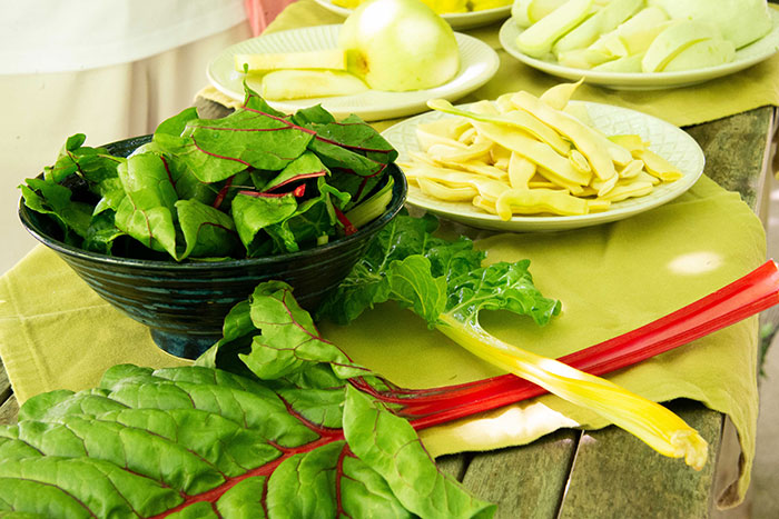 Master gardeners arrive early on Saturdays to harvest the freshest seasonal bounty from the vegetable beds at the Ranch Garden and set out samples for visitors to taste. Photo by Deborah Miller.