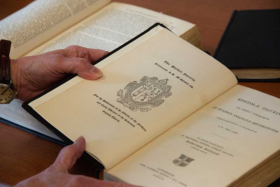 Ferrell searches for a passage in a reference volume. Photo by Deborah Miller.