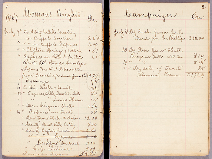 There are also meticulous records of the proceeds from the admission to meetings and sales of lecture tickets and suffragist and abolitionist literature. All in all, Anthony ran a remarkably efficient campaign that paid for itself, with significant sums carried over.