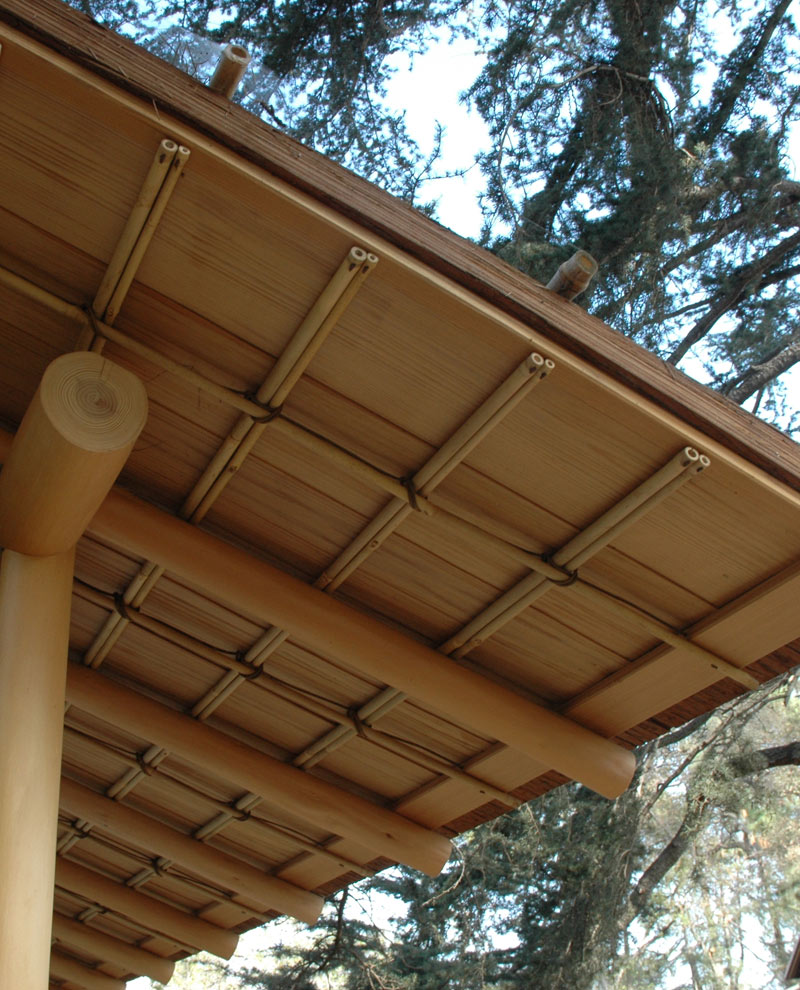 A glimpse at the teahouse set amid pines at the new tea garden.