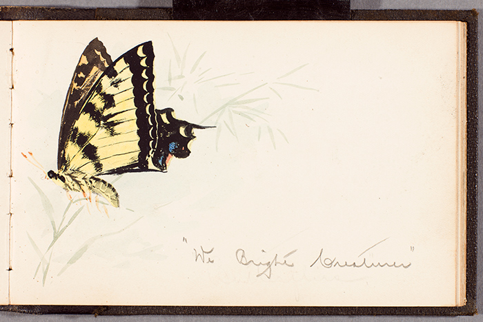 Percival made numerous sketches of the creatures she encountered along the hiking trail, including this colorful butterfly. The Huntington Library, Art Collections, and Botanical Gardens.