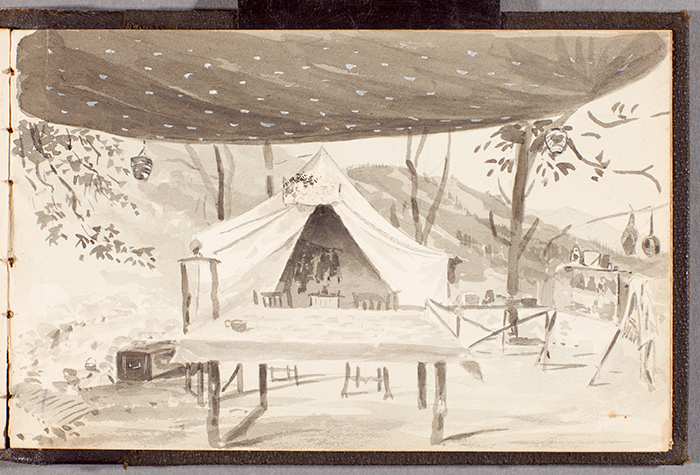 Percival’s most detailed view of a campsite during her 1893 trip to Old Baldy. The Huntington Library, Art Collections, and Botanical Gardens.