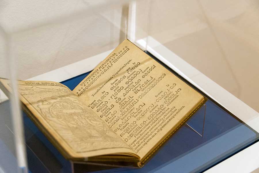 Sir Thomas More (1478–1535), Utopia , 1516. More’s book served as a thematic point of departure for the artists and writers whose works are featured in “Beside the Edge of the World.” Photo by Kate Lain. The Huntington Library, Art Museum, and Botanical Gardens.