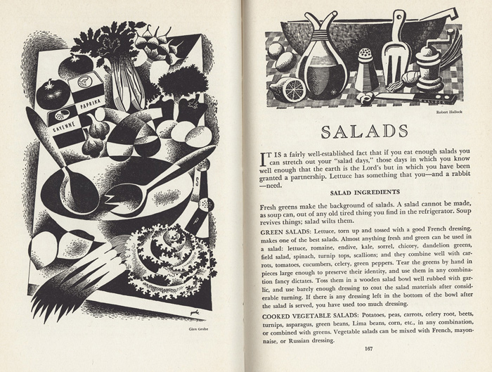 Many other books from the collection round out the Connecticut menu, such as the New Connecticut Cookbook, which has a chapter on salads. From Woman’s Club of Westport (Westport, Conn.), compiler. New Connecticut Cookbook: Being a Collection of Recipes from Connecticut Kitchens.First edition. New York and London: Harper & Brothers Publishers, 1947.