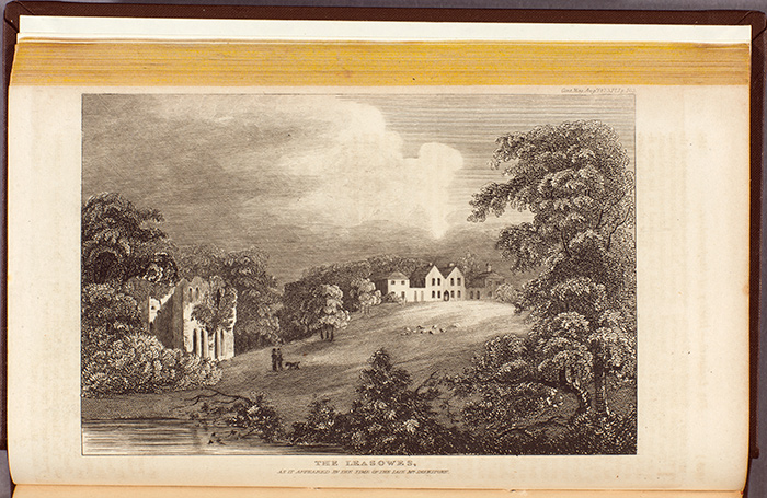 Engraving of the seat of William Shenstone (1714–1763) within the 144-acre Leasowes, as it was before the house was demolished and rebuilt in 1776. The Huntington Library, Art Collections, and Botanical Gardens.