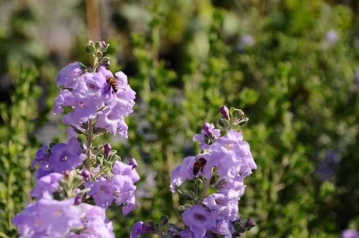 Take Leucophyllum langmaniae 'Lynn's Legacy' for example—one of Guerin’s favorites. A native southwestern shrub, it features mounds of silvery green foliage and profuse, long-lasting blooms in a delicate shade of lavender. It may be hard to believe that such a lush-looking plant requires only minimal irrigation, but it’s true. Other attractive specimens in the same genus are L. zygophyllum ‘Cimarron’ and L. frutescens ‘Heavenly Cloud’, which will also be available.