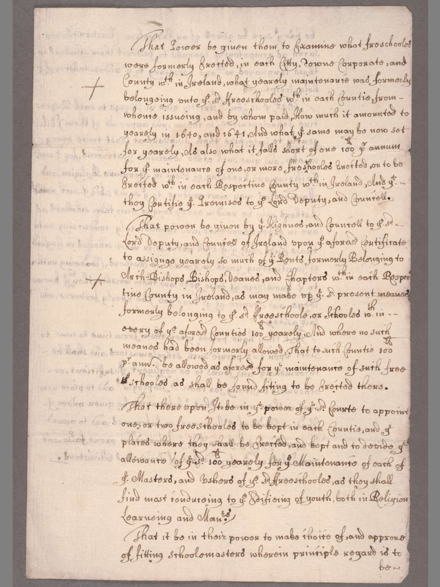 A Proposal Concerning Free Schools and Schoolmasters in Ireland, 1655. The Huntington Library, Art Museum, and Botanical Gardens.