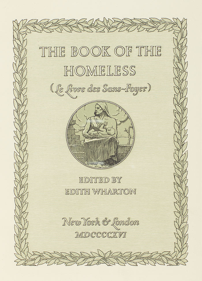 Title page of The Book of the Homeless, edited by Edith Wharton and published in 1916. The Huntington Library, Art Collections, and Botanical Gardens.