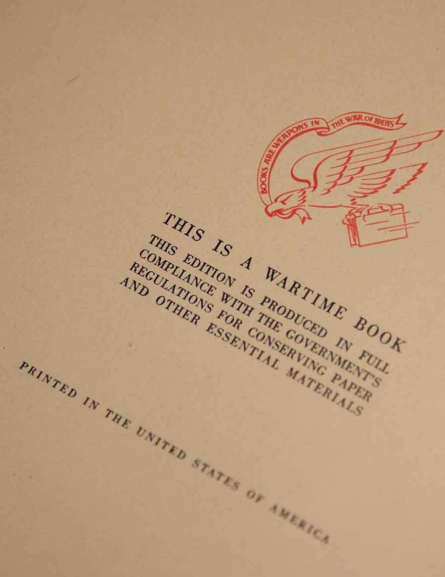 Armed Services Editions were reprints of selected works, designed and published specifically for servicemembers. Averaging just six cents per copy, these editions allowed the War Department to purchase books that were inexpensive and tailored to their needs. The design was standard, featuring the author and title, as well as a reproduction of the original hardcover dustjacket. The Council’s War Book Panel selected a variety of titles that would appeal to all interests, while inherently representing the values at stake and the purpose of the war.