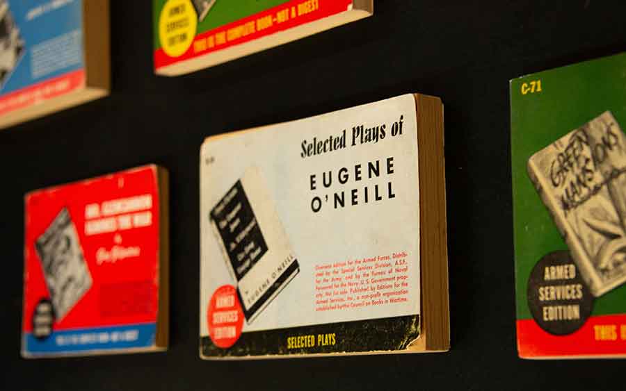 The “serious” titles selected for the Armed Services Editions, such as the selected plays of celebrated playwright Eugene O’Neill, influenced the popularity of paperback books in genres other than dime-store fiction after World War II. The Huntington Library, Art Collections, and Botanical Gardens. Photo by Deborah Miller.