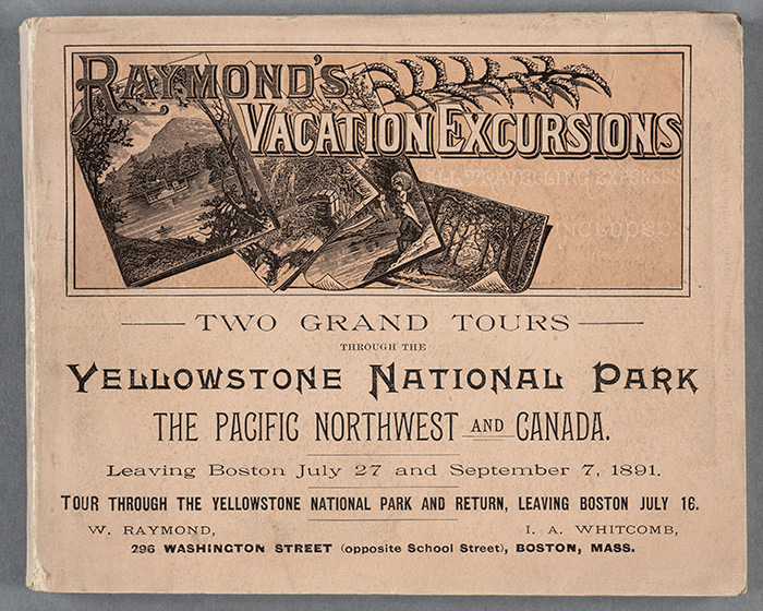 Raymond-Whitcomb Co., guide book cover, “Two Grand Tours Through the Yellowstone National Park,” 1891. The Huntington Library, Art Collections, and Botanical Gardens.