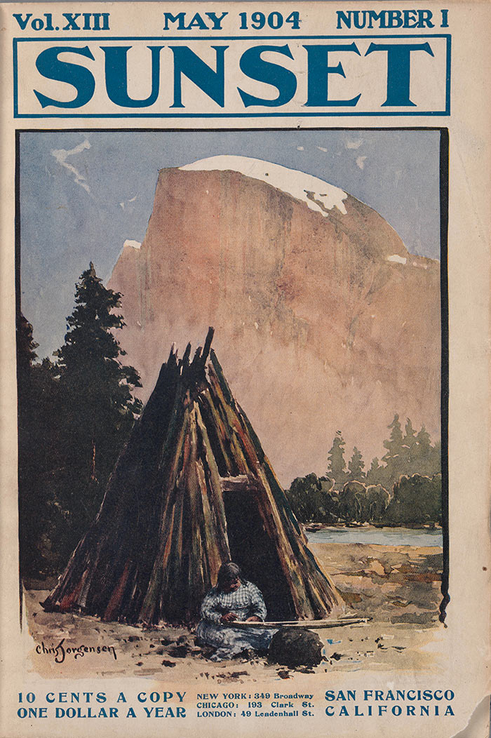 Sunset magazine, May 1904 issue cover, painted by Chris Jorgensen. The Huntington Library, Art Collections, and Botanical Gardens.