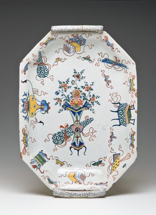 Tray with Handles, ca. 1730, Rouen, France, grand feu faïence. Gift of MaryLou Boone. Huntington Library, Art Collections, and Botanical Gardens.