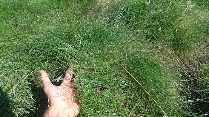 “Native Mow Free” sod (a mix of Festuca idahoensis, Festuca occidentallis, and Festuca rubra, 8–10 inches tall, sold in 2-foot by 5-foot rolls, full sun to significant shade)