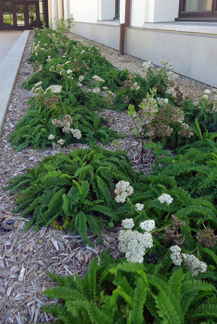 Yarrow (Achillea millefolium, 18–30 inches tall and wide if not mowed, full sun)