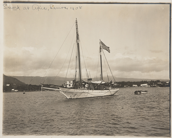 Sailing from Hawai’i, the Snark crossed the equator and stopped at numerous islands in the South Pacific. On April 29, 1908, the Londons anchored off the island of Manua, in American Samoa, and stayed in the area for a week. They watched a woman making tapa cloth (a decorative cloth made from bark) and visited the grave of Robert Louis Stevenson. The National Park of American Samoa includes the islands of Tutuila, Ta’u, and Ofu—designated a national park in 1988. At almost 5,000 miles from the mainland, it’s one of the least visited parks in the nation, not quite topping 14,000 visitors last year. Of Ta’u, Charmian wrote: “Our Carmel never flaunted more brilliant turquoise and emerald than do the glorious breakers of Ta’u.”