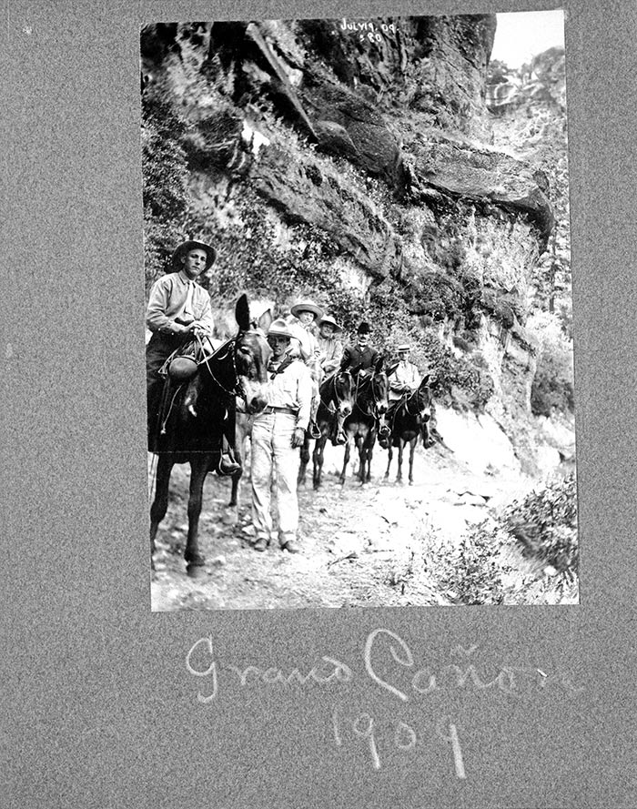Clouds over the crater of Haleakalā, Maui, 1908. Photo by Jack London. The Huntington Library, Art Collections, and Botanical Gardens.By the time the Londons reached the Solomon Islands, they were weary and in poor health, and decided to cut short their sailing adventure. They returned from the South Seas by steamer to New Orleans in 1909 and then took the train back to California. Along the way, they stopped to see the great wonder of the Southwest, the Grand Canyon. They rode down into the Canyon on mule, stopping for the signature trail photograph. Afterward, they spent the night on the South Rim at the luxurious El Tovar Hotel and then boarded the train to resume their journey home. The Grand Canyon became the 15th national park in 1919.
