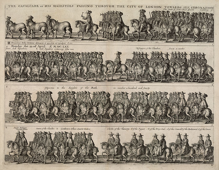 Charles II’s Coronation Procession, from John Ogilby, The Entertainment of His Most Excellent Majestie Charles II, in His Passage through the City of London to His Coronation (London, 1662). The Huntington Library, Art Collections, and Botanical Gardens.