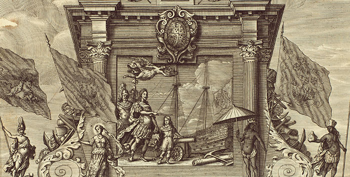 The Naval Arch (detail), from John Ogilby, The Entertainment of His Most Excellent Majestie Charles II, in His Passage through the City of London to His Coronation (London, 1662). The Huntington Library, Art Collections, and Botanical Gardens.