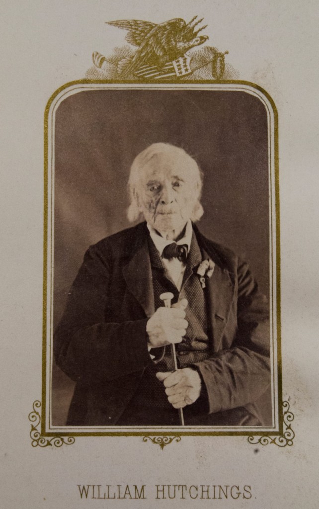 William Hutchings. Albumen carte-de-visite print; 3 ¼ x 2 ¼ in. From E. B. Hillard, The Last Men of the Revolution: A photograph of each from life, together with views of their homes printed in colors. Hartford: N. A. & R. A. Moore, 1864 (RB 96906).