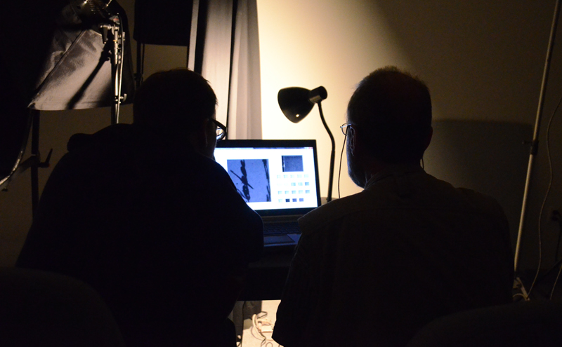 Bearman and Boydston taking a look at images in the lab.