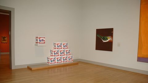 Grouping of the Brillo boxes adjacent to Rucha's painting