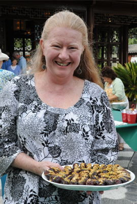 Kitty Connolly, the associate director of education at The Huntington, with a platter of stuffed dates.