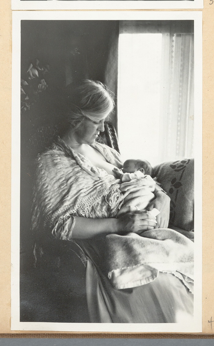Ralph Arnold snapped this photo of his wife, Winninette Arnold, nursing their infant daughter, Winninette Jr., in their home in South Pasadena, Calif., in 1918. The Huntington Library, Art Collections, and Botanical Gardens.