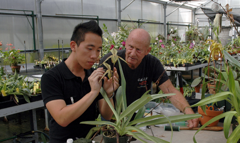 Brandon Tam and Lance Birk know what it's like to drive the 101 Freeway with a truck full of orchids. Last summer, they helped move more than 6,000 orchids from the Santa Barbara home of the late S. Robert Weltz to the greenhouses of The Huntington. Tam is a former intern at The Huntington and is now on staff caring for part of the orchid collection. He works in tandem with Birk, a volunteer who knew Weltz personally and suggested The Huntington as a possible home for the collection. You can read more about their role tending to the new collection in the current issue of Huntington Frontiers.