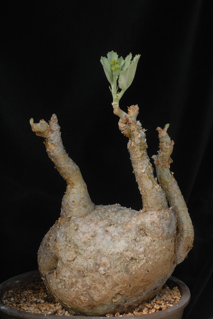 Cyphostemma seitziana, from Namibia, is a caudiciform plant, which means that it has a swollen, water-storing stem to sustain it during drought. Photo by Karen Zimmerman.