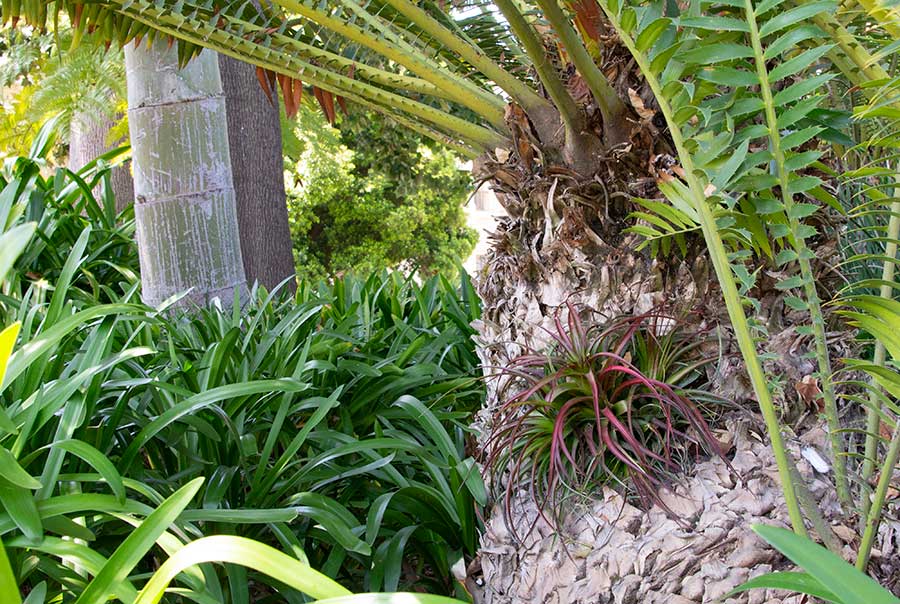 The same is true of Loran Whitelock’s favorite cycad. After the bees were removed, Roberson stuffed the hole with clean pumice and attached some stainless-steel mesh so that squirrels could not get inside. He then camouflaged the hole with a beautiful reddish Tillandsia, or air plant, which looks right at home on the cycad trunk. Said Mitchell: “That was a textbook relocation.”