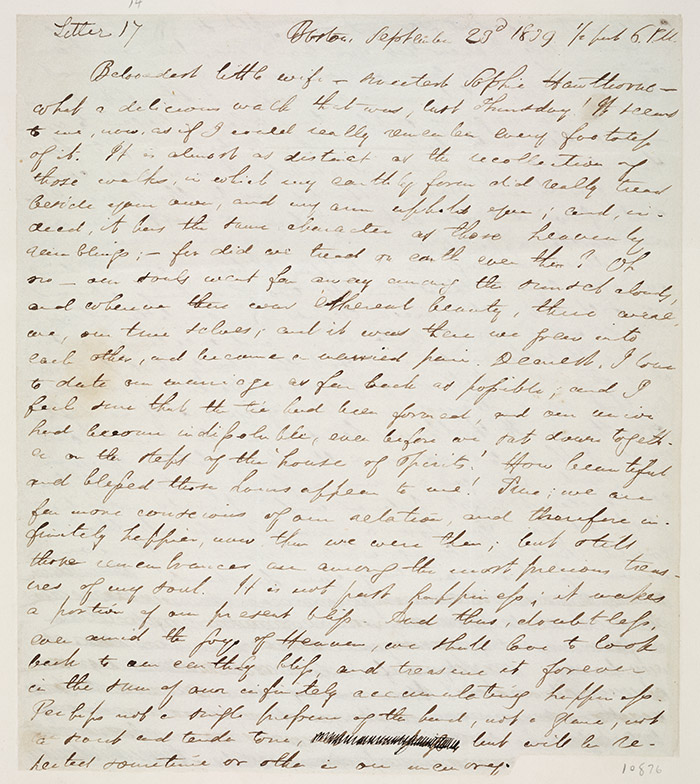 Letter from Nathaniel Hawthorne to Sophia Amelia (Peabody) Hawthorne, 1839. The Huntington Library, Art Collections, and Botanical Gardens.