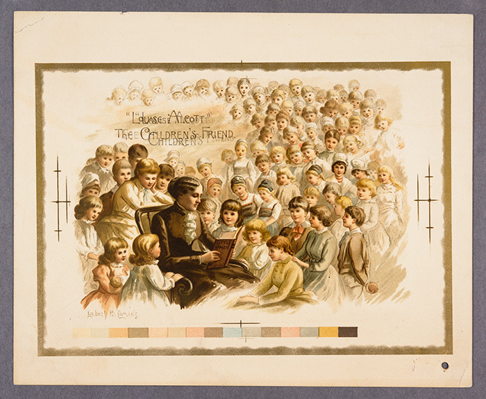 ‘“Louise Alcott” the children’s friend,’ color lithograph by Elizabeth B. Comins, ca. 1888. The Huntington Library, Art Collections, and Botanical Gardens.