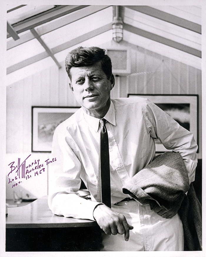 After spending the afternoon with Kennedy in November 1958, Murphy told his wife that he “had photographed the future President of the United States.” Photo by William S. Murphy, Los Angeles Times, 1958. Signed copy from The Huntington Library, Art Collections, and Botanical Gardens.