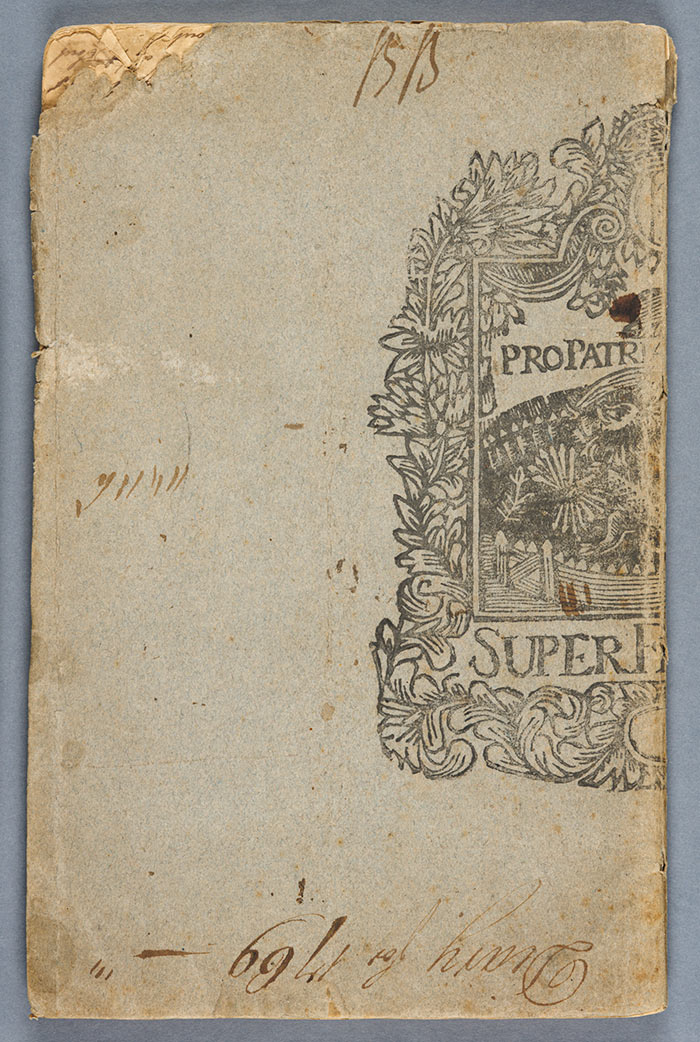 Cover of Thomas Parsons’ diary. The stamp that appears on the front and back is a logo used by a Dutch writing-paper company. When Parsons bought the pad of writing paper, he folded it in half to make a booklet. The Huntington Library, Art Collections, and Botanical Gardens.