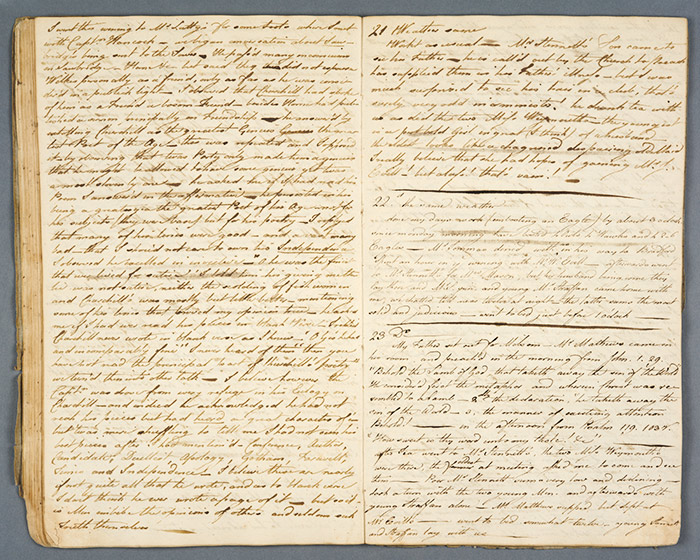 Before I arrived at The Huntington for my fellowship in August, I spent hours looking through the Library’s online catalog, drawing up lists of the manuscripts, rare books, and pamphlets I wanted to examine while here. The object I wanted to see first was this one: a personal diary, written in 1769, by a young stone carver who lived and worked in the spa city of Bath, England. His name was Thomas Parsons, and he lived from 1744 to 1813.