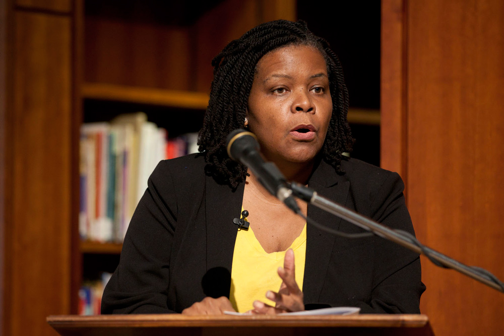 Annette Gordon-Reed speaking at the Jefferson Library (photo by Dan Addison/University of Virginia Public Affairs).