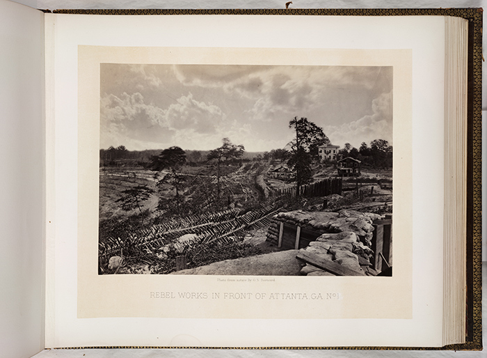 Rebel Works in Front of Atlanta, Ga., No. 1. 1864, printed 1877. Albumen print. After Confederate forces evacuated Atlanta, photographer George N. Barnard (1819–1902) documented the trail of destruction left by Sherman’s notorious “March to the Sea.” The Huntington Library, Art Collections, and Botanical Gardens.