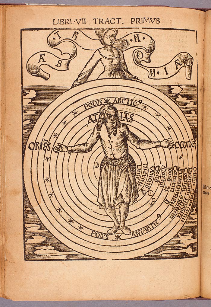 Diagram of the cosmos, from Gregor Reisch, Margarita philosophica (Pearl of Wisdom), 1504. The Huntington Library, Art Collections, and Botanical Gardens.